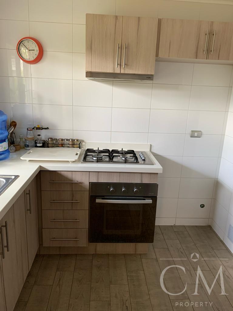Hall de acceso, amplio living comedor con acceso a terraza, cocina equipada con muebles de base y aereos, campana, encimera a gas y horno electrico.